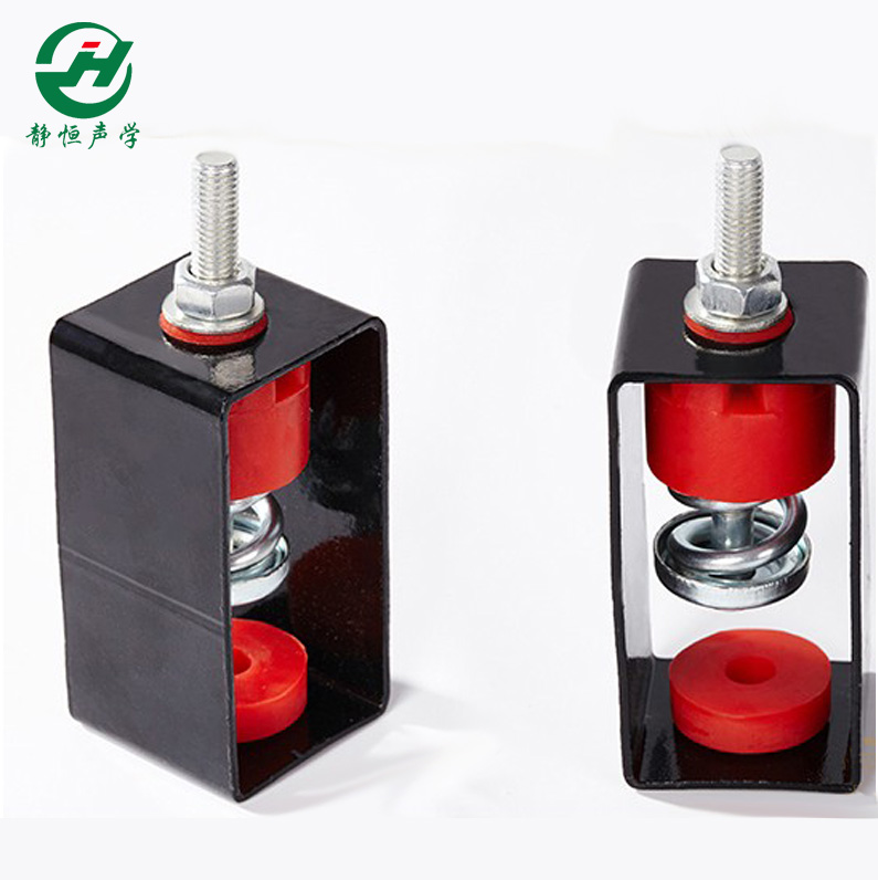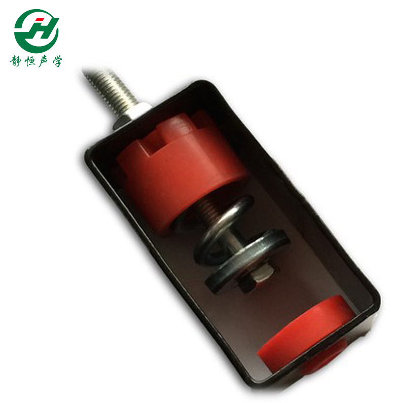 吊顶隔音减震器(又叫吊顶弹簧,隔振吊钩,吊顶减震吊钩)吊顶隔音减振吊钩是利用橡胶、钢弹簧的反压原理,采用优质钢弹簧和合成橡胶阻尼村料组成的隔振降噪元件,设计成悬挂式缓冲减振吊架。它具有钢弹簧的高弹性、固有频率低和合成橡胶的阻尼比大的双重特点,能消除钢弹簧所特有的共振时振幅激增的现象,在较宽的干扰频率范围内有相当明显的隔振效果,特别适合悬挂隔离因设备振动造成的低频固体传声。