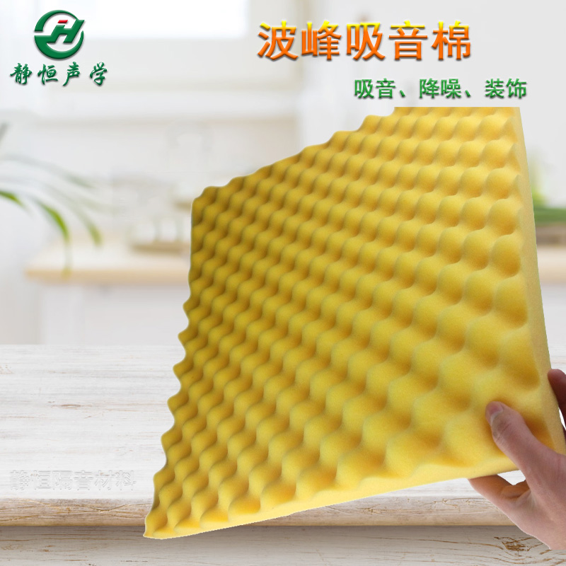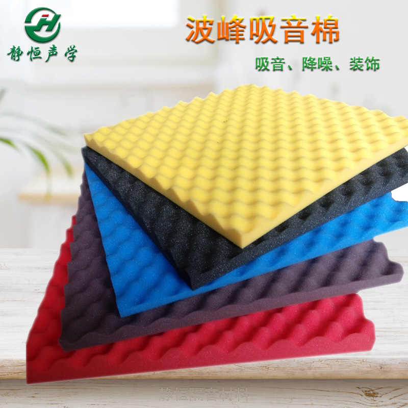 波峰吸音棉也称为鸡蛋棉、波峰棉,是由聚氨酯发泡经过特殊加工制成,产品达到环保E1级,防火B2级、防水、防潮、防腐、防霉。表面为波浪形,常用规格为2M*1M厚度为30mm和50mm,材质为黑色内部呈微孔状,合理的设计能够达到良好的吸音效果。