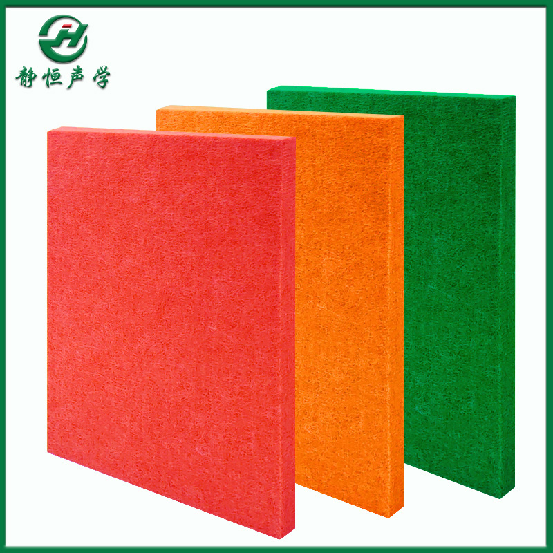 聚酯纤维吸音板吸音效果非常好,并且环保、阻燃、防水、防潮、防霉、防腐。装饰性强,色彩丰富,样式美观大方,表面的轻柔给人非常舒适的感觉。抗压性、柔韧性及高弹性,可承受任意的撞击快速恢复原形。产品运输方便、安装简单,还可任意切割用以拼合成各种造型。